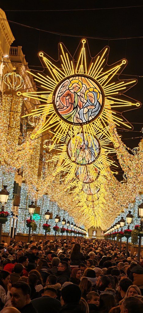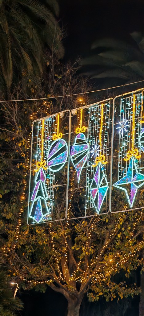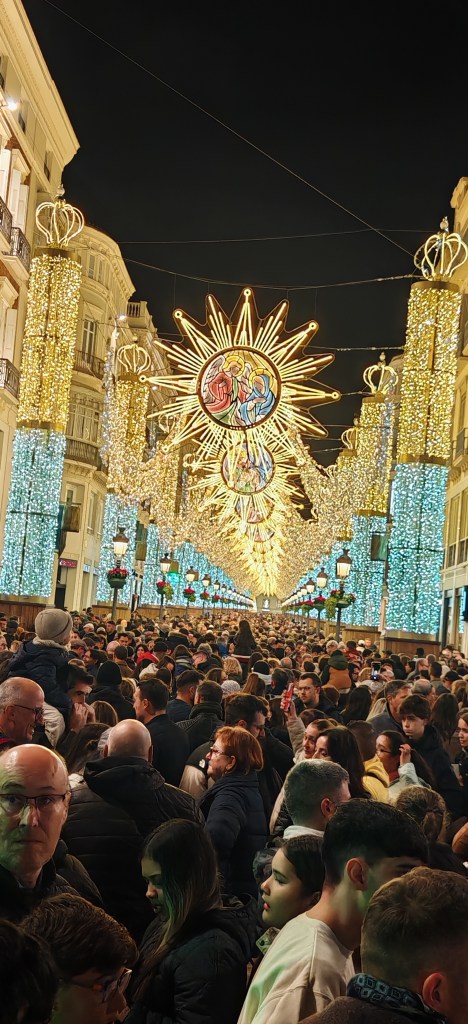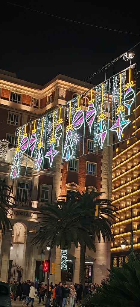 Am uitat să spun de experienţa din 1 Ianuarie seara, când am fost împreună cu prietenii mei să vedem spectacolul de lumini şi sunet pe Calle Larios. Decoraţiunile de Crăciun s-au luminat simplu în timp ce s-au auzit trei cântece. Atât a fost. Dar, mi-au plăcut mult şi decoraţiunile de pe bulevarde, mai ales că erau turquoise, iar când te apropiai de ele deveneau mov! Perfect pentru mine! Culorile mele!