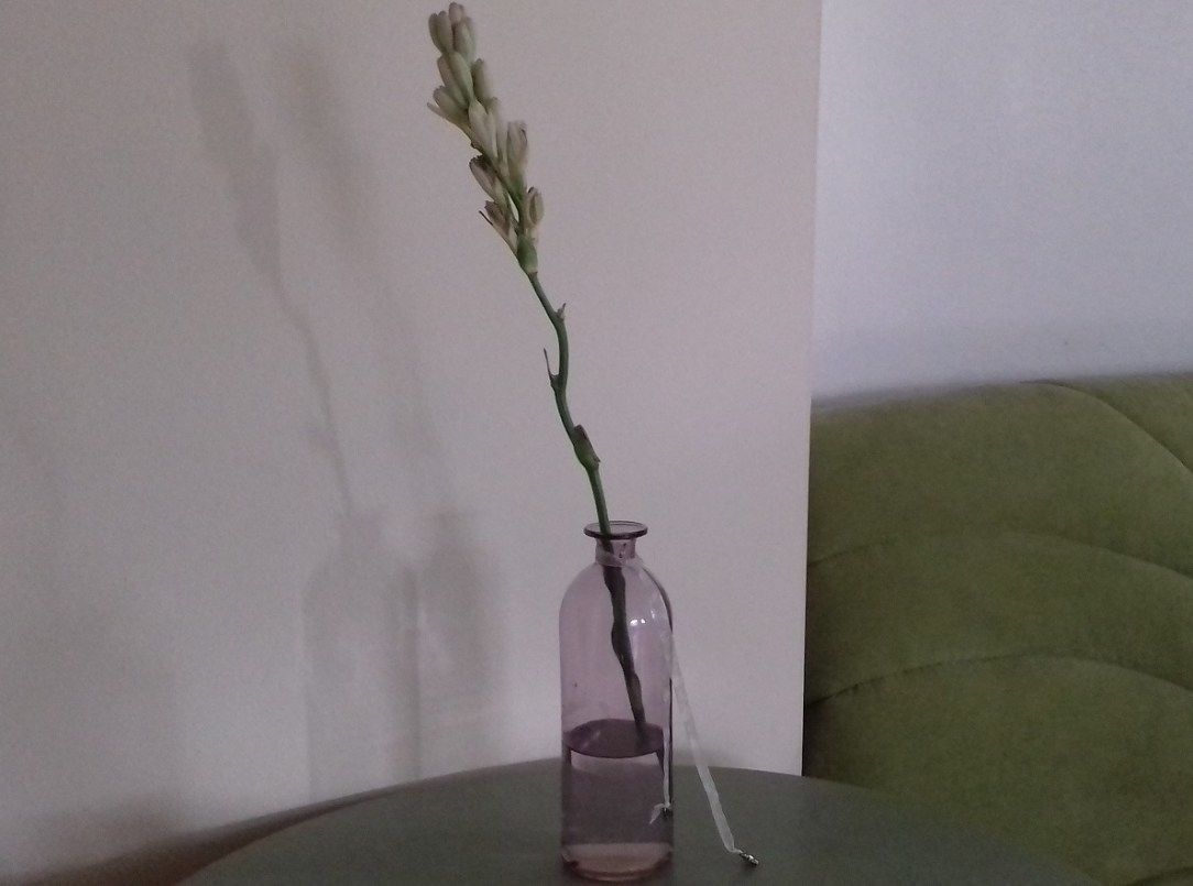 I bought myself a tuberose to honor that of ‘17 (the only stem that could take me from hell to now) that’s what I see inside the pearly little roses (a freight car bearing all whiffs of life) burst on a twisted-heading-to-the-essence rod (their perfume- instants from another life of sealed emotions). I bought myself a tuberose to