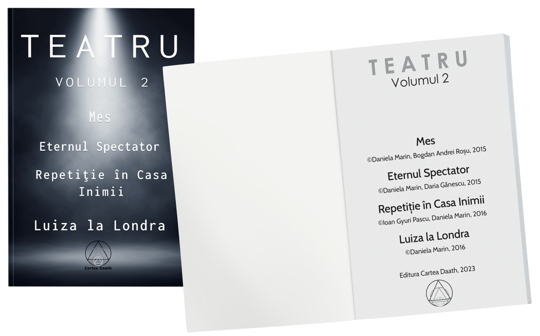 Nu am scris nimic aici despre această carte! În 30 Iunie 2023 (anul trecut!!!) a apărut Volumul 2 al colecţiei Teatru. Am ţinut neapărat să existe cartea tipărită în această zi pentru că ultima producţie a Teatrului Spiritual a avut avantpremiera în 30 Iunie 2016. (E vorba despre spectacolul Mes.) Dacă te ţii de cifre,
